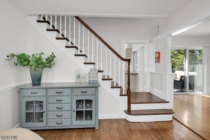 Welcome to this beautifully updated 4-bedroom cape where classic charm meets modern convenience. Experience instant charm with the inviting covered front porch. The main level features a bright and spacious living room, anchored by a cozy wood-burning fireplace. Entertaining is effortless in the formal dining room, which opens via a slider to a sunny deck. The kitchen boasts stainless steel appliances, abundant cabinetry, and ample prep space, including a breakfast bar perfectly positioned to enjoy views of the lush yard. The main floor offers two generously sized bedrooms and a full bath. The entire upstairs provides a private retreat for the primary bedroom, featuring a separate full bathroom and an oversized hall closet. The finished walk-out basement expands the living space with a huge rec room, family room and bedroom with a slider to the back patio, offering a seamless flow to the outdoors. A laundry room, utility room, and storage closet complete this level. Updates include new ductless AC/Heat mini split units (2024), new Timberline roof and sheathing (2022), front porch and rear deck Trex decking (2023), chimney pointing (2023), new brick front steps (2022), hot water heater (2025), radon mitigation system (2024), water-powered backup sump pump (2024), new gutters and leaders with Leaf Guard transferable lifetime warranty (2022). Close to shopping, parks, restaurants, and transportation, this is the exceptional home you’ve been waiting for!