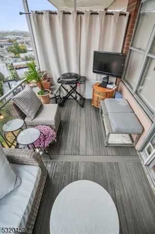 Discover luxury, comfort, style, and convenience in this beautifully appointed penthouse 2-bedroom, 2-bathroom condo with higher ceilings with recessed lighting at the coveted Executive House in Hackensack. Perfectly situated in the heart of Hackensack, this sun-drenched residence features a spacious open layout with walls of windows, flooding the home with natural light and offering stunning views, including glimpses of NYC, from your private terrace, often including rainbows. The modern kitchen is equipped with stainless steel appliances, granite countertops and abundant cabinet space ideal for both everyday living and entertaining, plus a breakfast island and/or bar area. Both bedrooms offer generous proportions, and the bathrooms are tastefully updated with contemporary finishes; one bedroom includes a unique washer/dryer for your convenience. Enjoy resort-style amenities in a serene, park-like setting spanning 3.7 acres. The Executive House offers; 24-hour concierge & doorman service, secure package handling, as well as in ground swimming pool, private park, on-site building management and storage unit; 1 outside parking space ($) & overnight guest parking. HOA includes heat, electric and water, dramatically reducing your utility costs. Centrally located just minutes from NYC trains, major highways, shopping, and NYC-bus on corner, this is luxury, lifestyle, and location all in one. A deeded one-car parking spot in the garage is also available for separate purchase.