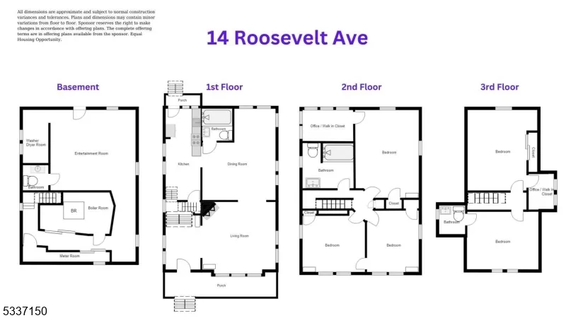 Welcome to 14 Roosevelt Ave in East Orange, NJ! This charming single-fam home is situated on a generous 4,000 square feet lot, nestled in the Presidential Estates neighborhood within the East Orange School District. Step into the heart of this home a stunning, brand new kitchen equipped with a stove, refrigerator, microwave, and dishwasher. The first floor boasts a spacious living room with a charming fireplace, creating a warm and inviting atmosphere. The heating system ensures comfort throughout the home. Featuring five bedrooms, this property offers ample living space for a diverse range of lifestyles. The first and second floors each house a full bathroom, providing convenience and comfort. Additionally, there are two half bathrooms on the 3rd floor and basement, ensuring practicality for residents and guests. The master bedroom is connected to a separate office area, allowing residents to customize it according to their preferences, whether transforming it into a walk-in closet or their own secret nook. The finished basement adds to the overall livable space, offering versatility and functionality. The garage, located in the backyard and equipped with a shed, adds convenience, and a lovely small yard completes the picture. The exterior facade of the house is not only beautiful but also vibrant, making it a standout in the neighborhood.