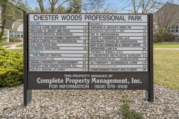 Prime Office Space located in Chester Woods Professional Park. Freshly painted, new carpet installed. End unit includes conference room, 2 private offices, spacious reception area, and room for kitchen area / filing room. Updated bathroom. New carpeting recently installed in some areas. Immediate Occupancy if needed.