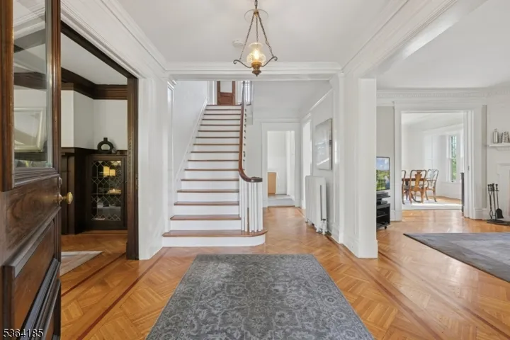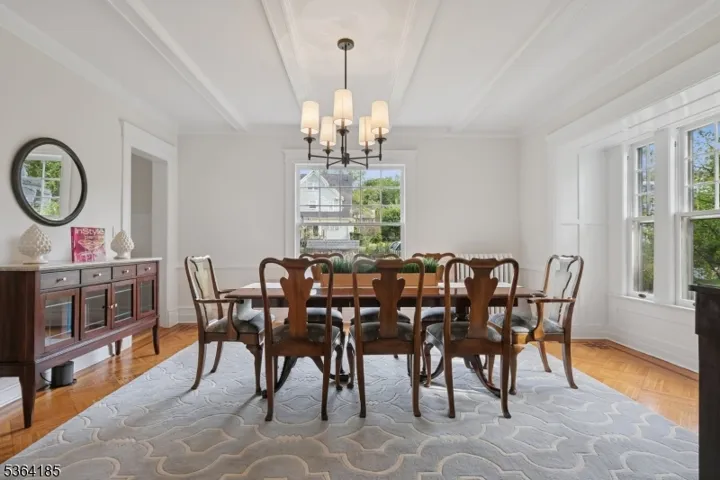 Calling all front porch lovers !!! Come see this fantastic 5/6 bedroom, 3.2 bathroom Dutch Colonial home resting on a fabulous professionally landscaped corner property conveniently located to both the thriving downtown of South Orange and the quaint Maplewood Village. The welcoming wrap around front porch certainly sets the tone for your enjoyment as you enter the home’s stunning foyer. High ceilings, parquet floors, over-sized windows, leaded bookcases, pocket doors, freshly painted interior….The first floor offers a warm and inviting living room with wood-burning fireplace, beamed ceiling, leaded bookcases & pocket doors, a family room with wood-burning corner fireplace and direct access through French doors to the wonderful wrap around porch, sun-filled dining room w/beamed ceiling & pocket doors, butlers pantry/laundry room, renovated kitchen w/center island, and new powder room (2025). The second floor has a large primary suite with full walk-in dressing room/closet, and a striking primary bathroom plus 2 more very spacious bedrooms and a beautiful hall bathroom. The third floor offers 2 more bedrooms, an office/bedroom and full bath with soaking tub. Rounding out the lower level is a huge rec room, powder room, storage and utility area. Enjoy the beautiful property with a private, flat, fenced-in yard with 2 patios. Stunning home, fabulous location, perfect for entertaining and day-to-day living.