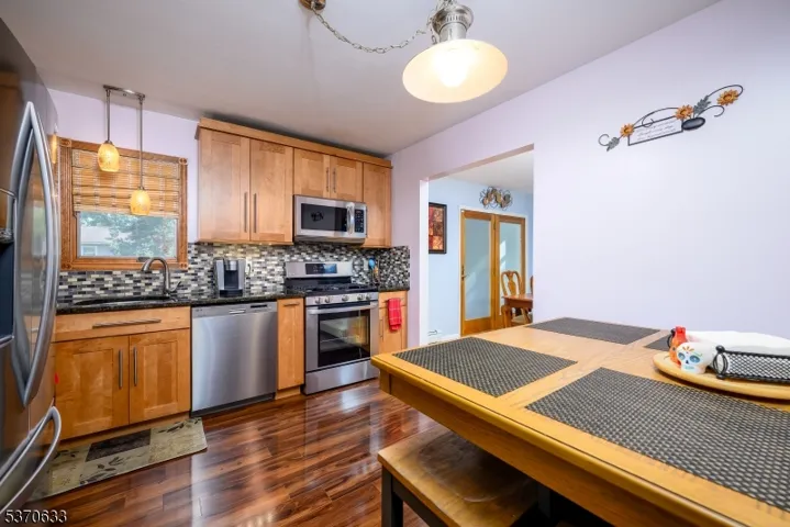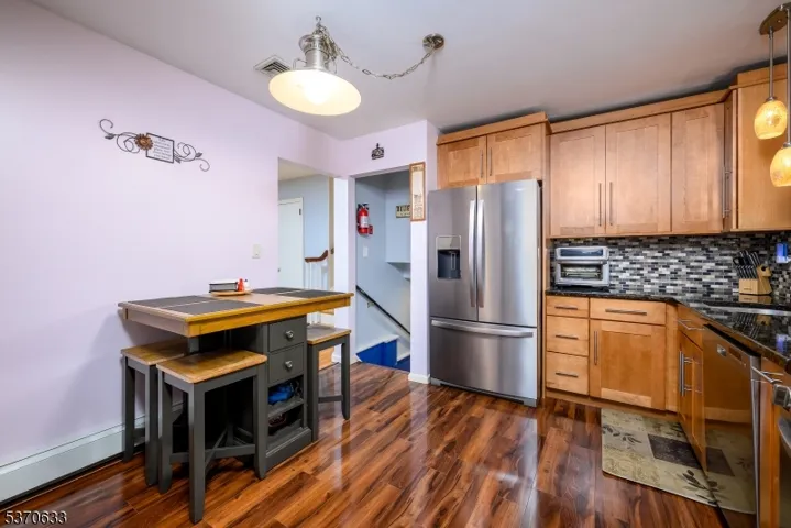 Picture Perfect Split Level in Inman Heights, one of Rahway’s most sought-after neighborhoods! This well-maintained home with many custom features offers comfortable living in a convenient location. Step into the expansive living room that flows seamlessly into the formal dining room, adjacent to a chef-inspired eat-in kitchen with maple cabinets, granite countertops, glass tile backsplash, stainless steel appliances, and a 5-burner gas range. The second level offers three bedrooms and a full bath, while the grade-level family room features luxury vinyl plank flooring, recessed lighting, and a convenient powder room. The basement includes a laundry/utility area, storage, and an additional flex room perfect for a home office. Enjoy summer entertaining in the backyard with a spacious custom deck, covered patio, and above-ground pool, with a grill gazebo included. Recent updates include a newer roof, energy-efficient leased solar panels, a one-year-old hot water heater, custom white plantation shutters, and beautiful hardwood floors. This lovely home blends style, comfort, and a prime location don’t miss it!