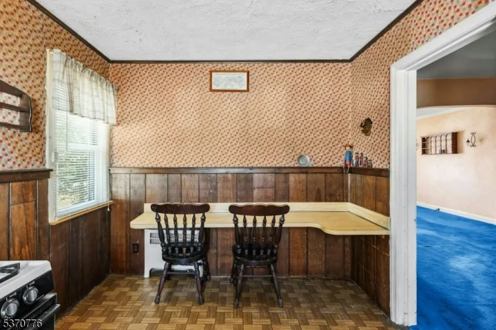 great neigborhood needs work eat inkitchen porch dinanig area bay window in living room wood floors under carpet see bedroom buyer responsible for CO and selling in as is condition