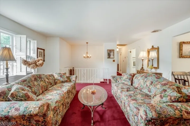 Welcome to 4 Williamsburg Drive! Located in the heart of Roseland, this is the first time this well-maintained home is on the market since 1968. This spacious 4 bedroom, 2 bathroom bi-level has the essentials on both floors. Charming shutters adorn the first floor windows as you step in to an open living and dining room area, conveniently located next to the eat-in kitchen that overlooks the sprawling backyard. The primary bathroom has two access points, one from the main hallway and the primary bedroom. There are 2 additional bedrooms on the first floor with ample closet space. Original hardwood floors can be found under the carpeting on the main level. The ground level has a spacious bedroom, family room, galley kitchen, full bathroom, laundry room, and screened-in porch. This living space is accessible through a garage or backdoor entrance, enhancing privacy. The screened-in porch is newly updated and perfect for enjoying peaceful evenings outdoors. The garage and driveway space allows for 6 cars to park comfortably. The backyard has endless potential for entertaining or adding amenities as desired. Updated features include the central air conditioning unit and garage door openers. The neighborhood is perfect for long walks, biking, and enjoying nearby parks and shops. Don’t miss out!