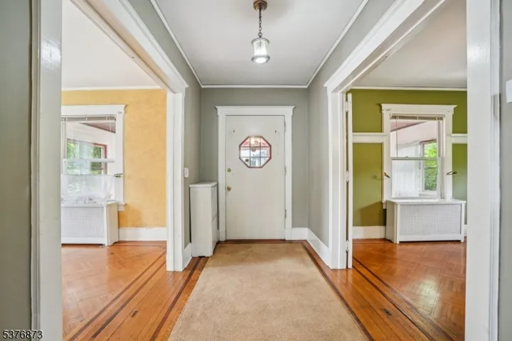 Charming Colonial with beautiful Parquet Floors w/ribbon trim in Living Room, Dining Room and Family Room. Rear Porch is heated and has a half bath. Front Porch offers a space to relax with your morning coffee or to just read or enjoy the peace and quiet! This house has a lot to offer. Just bring your ideas to update to your personal taste! Convenient to the Bus to NYC, Short distance to Nutley Business District, Grammar School, and Nutley Parks. All on a one way street!Per conversation with the Nutley Tax Assessor on 8/12/25, based upon an estimated assessed value of $500,000 X .8935 the equalization rate = $446,750 Times 2025 tax rate of 2.0699 = $12,057.78 estimated property taxes.