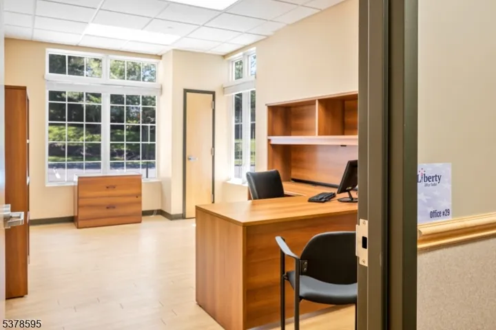 Bright corner office at Liberty Office Suites. This private office features two large windows that fill the space with natural light, creating a warm and inviting work environment. The rental INCLUDES ALL UTILITIES, high-speed internet, 24/7 building access with remote entry, and shared kitchen amenities with complimentary beverages and snacks. Tenants also enjoy access to a shared waiting area with seating for clients and colleagues, free meeting rooms, and convenient on-site parking. Located in a prime location with easy access to Routes 46, 80, 287, and 202, this office provides a professional alternative to working from home at a competitive price point. Schedule a tour today and experience this bright and convenient workspace.