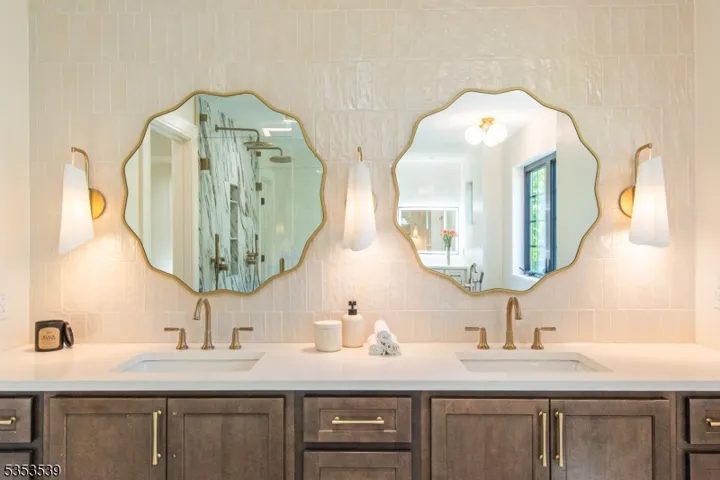 NEW & IMPROVED WITH BEAUTIFUL NEW SPACIOUS FLAT BACKYARD! Come see 6 Buttenheim, a 2025 custom-built dream home designed by Samaan Design Group & brought to life by Champion Estates. Located on a quiet cul-de-sac in the coveted Hill Section in the heart of Madison, this luxurious residence blends quality craftsmanship w modern elegance & smart innovation, only .7 miles to downtown, top-rated schools & NYC direct transit. Step into the 2-story foyer adorned designer tile leading to white oak hardwood floors that flow throughout. The chef?s paradise eat-in kitchen features expansive waterfall island w breakfast bar, quartz backsplash & top-of-the-line appliances. The entertainer?s family room features tray ceiling, travertine fireplace & access to large outdoor deck/patio overlooking the .7 acre wooded lot w endless possibilities. Upstairs, the serene primary suite offers tray ceiling, custom WIC & spa-like ensuite bath w walk-in shower & freestanding tub. 5 guest bedrooms add flexibility/privacy, including 1st floor & basement suites w full baths & a charming princess suite w WIC/private bath. Outside, the home stuns w two-toned siding & oversized 2-car garage. Sophisticated smart home features include immersive indoor/outdoor audio system w invisible speakers, automated lighting, touchscreen controls & more!