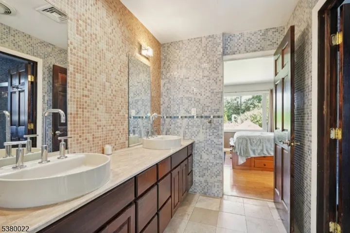 Welcome to this exceptional 5488 sqft residence, offering a perfect blend of elegance, comfort, and functionality, with generous living spaces across three levels. ideal for both everyday living and entertaining, truly a property not to be missed! Step into the grand entry foyer with vaulted ceilings, setting the tone for the home’s open and airy design. The gourmet kitchen features dual cooktops, stone countertops, a dishwasher, a large refrigerator, and a small breakfast nook. A formal dining room with large patio doors, which flows seamlessly to the patio and private backyard. The living room boasts cozy sitting area with a warm wood-burning fireplace. A spacious 1st floor bedroom suite includes a shared fireplace and a luxurious bath with whirlpool tub, while an additional small bedroom and full bath complete this level. Upstairs, enjoy a large family room/office space, highlighted by a dramatic wall of picture windows. Bedrooms 4 and 5 share a convenient Jack & Jill bathroom with a private toilet and shower room. The primary suite is a true retreat with a spa-inspired bath featuring a whirlpool tub, separate shower, private toilet room, and double-sink vanity. A large walk-in closet and private balcony overlooking the backyard add to its luxury. The basement offering a family room with gas fireplace, pool table, bar, and a media room/library. Backyard Oasis step outside to your own private retreat with a large brick patio, gazebo, and a charming outdoor brick fireplace.