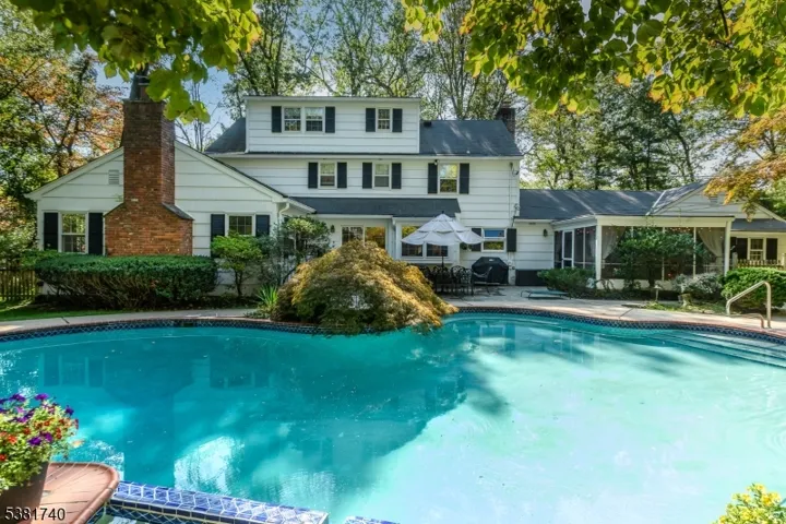 SUPER TRADITIONAL COLONIAL SET ON LARGE PRIVATE WOODED LOT OFFERS EH, LR, FDR, COUNTRY EIK W/ SLIDER LEADING TO PATIO & IN-GROUND POOL. FR W/ FPL, CATHEDRAL CEILING W/ SKYLIGHTS. OFFICE/DEN FPL PARQUET FLOOR & H/W FLOORS THRUOUT EXCEPT FR. ENCLOSED PORCH, MUD RM & PR. 2ND FLOOR CONSISTS OF 3 BR’S W/ DOUBLE CLOSETS. NEWER HALLWAY BATH 1-1/2 YEARS OLD. MBR W/ WIC & FULL BATH. 3RD FLOOR HAS A GUEST SUITE LARGE BR W/ FULL BATH & AND ATTIC /STORAGE.FULL FINISHED BASEMENT W/ LAUNDRY. GAS HW HEATER 2022 , TWO CAR OVERSIZED GARAGE, PARKING FOR 10 CARS. .SHORT WALK TO TOWN SKATING POND. INTERIOR & EXTERIOR RECENTLY PAINTED-AGENTS & CLIENTS, PLEASE PULL UP DRIVEWAY-LOTS OF PARKING-A MUST SEE.