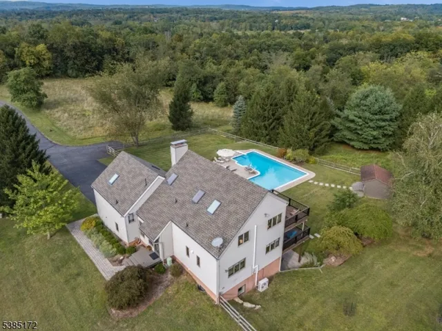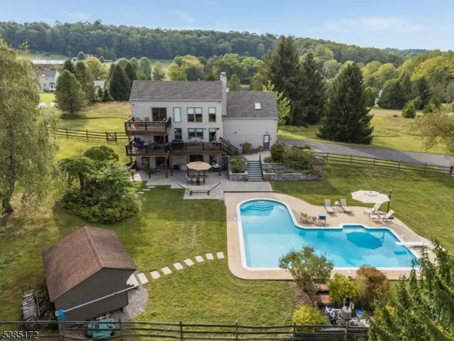 OUTSTANDING POST & BEAM HOME NESTLED ON ALMOST 14 ACRES WITH 3 LEVELS OF LIVING SPACE IN FRANKLIN TOWNSHIP! THIS 3/4 BEDROOM HOME OFFERS NUMEROUS NEW AND RECENT UPDATES INCLUDING SOME NEW WINDOWS, LIGHTING, SLIDING DOORS, HARDWOOD FLOORS, NEW GARAGE DOORS, PLUS A PRISTINE 3-CAR DETACHED GARAGE COMPLETE WITH AIR CONDITIONING, WATER, HEAT, AND ITS OWN SEPTIC SYSTEM! STEP INSIDE TO A GOURMET UPSCALE KITCHEN WITH STAINLESS STEEL APPLIANCES, CENTER ISLAND, AND PANTRY. SEPARATE DINING AREA AND LIVING ROOM WITH FIREPLACE BOTH LEAD TO THE OVERSIZED DECK, PERFECT FOR ENTERTAINING. THE SECOND LEVEL FEATURES A LOFT WITH SITTING AREA OVERLOOKING BELOW, AND A LUXURIOUS PRIMARY BEDROOM WITH FULL BATH AND PRIVATE BALCONY. TWO WELL APPOINTED ADDITIONAL BEDROOMS AND A PRIVATE BATH COMPLETE THIS LEVEL. THE LOWER LEVEL OFFERS A RECREATION ROOM WITH WOOD STOVE, A GYM THAT CAN BE CONVERTED BACK TO A 4TH BEDROOM. THE WALL AND CLOSET WAS REMOVED, FULL BATH, OFFICE, AND WALKOUT TO PATIO. ENJOY YOUR OWN PRIVATE RESORT WITH INGROUND GUNITE POOL, CABANA, AND BEAUTIFULLY MANICURED GROUNDS AND A TOTAL OF 5 GARAGE SPACES BETWEEN ATTACHED AND DETACHED GARAGES. THIS PROPERTY IS ALSO IDEAL FOR HORSES WHICH BACKS UP TO COUNTY LAND WITH ACCESS TO RIDING TRAILS. LOCATED CLOSE TO HISTORIC CLINTON, RESTAURANTS, SHOPPING, FARMS, AND NORTH HUNTERDON HIGH SCHOOL. A TRUE MUST-SEE PROPERTY THAT COMBINES LUXURY, PRIVACY, AND A LIFESTYLE OF COMFORT!