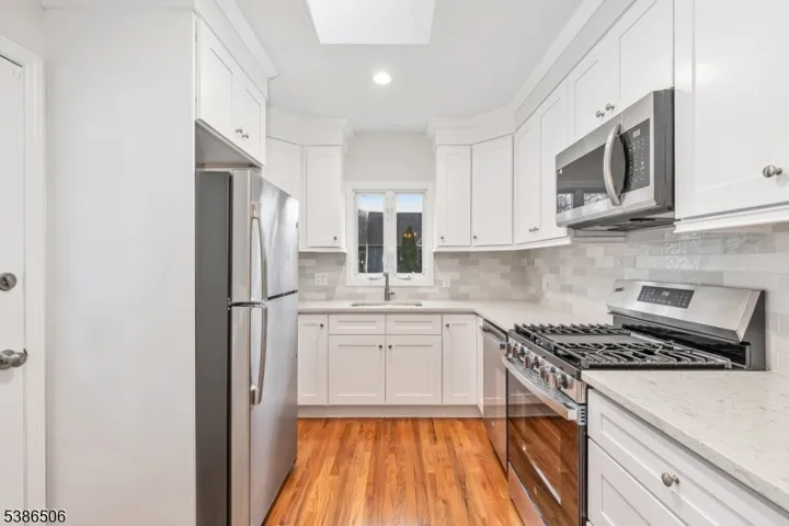 Fully renovated and move-in ready! This beautifully “just” updated home in the heart of Garwood is located on a quiet street backing directly to beautiful Unami Park – offering the perfect blend of peaceful living and convenience. Renovated in 2025/2026, every surface has been freshly painted, with new light fixtures, ceiling fans, and updated outlets throughout. The stunning new white shaker kitchen features all new appliances, quartz countertops, a stylish tiled backsplash, skylight, and brand-new hardwood floors extending into the formal dining room. The first-floor full bath was previously completely renovated, showcasing modern tile work and a tub/shower combo. Enjoy relaxing on the open, covered front porch, take advantage of a large full basement with a one-piece lav that can be finished with backyard access, and appreciate the space and storage of an oversized two-car garage. Just 7 blocks to downtown Garwood, NYC train and bus lines, shops, and dining. This is a rare opportunity in a prime location…Priced to sell. Hurry! Don’t miss it!