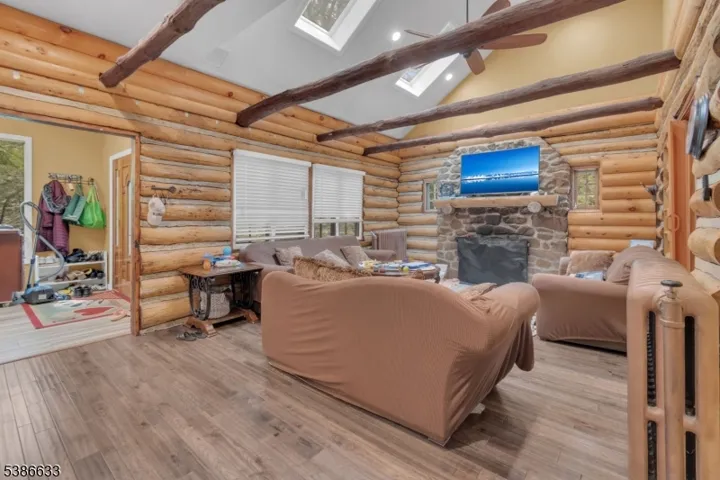 Sophisticated Country Living in Prestigious Warren! Distinctive 4BR, 2.5BA log cabin estate showcasing dramatic vaulted ceilings, rich wood finishes, and sun-filled open spaces. The resort-like backyard features a sparkling in-ground pool, entertaining patio, and 2-car garage, all set on a private, picturesque property just minutes from schools, fine dining, and NYC access.