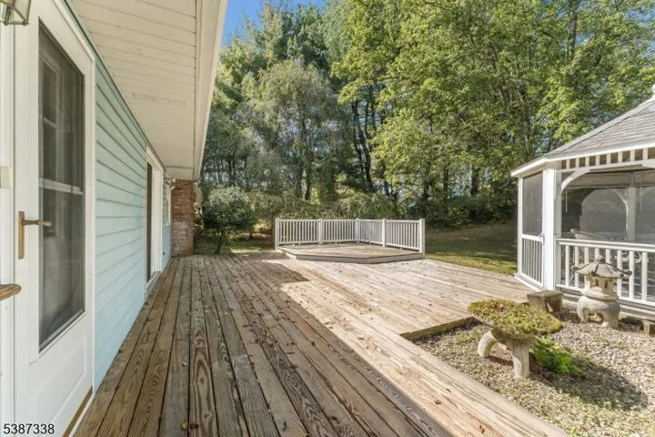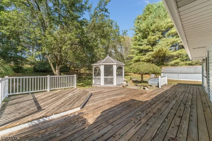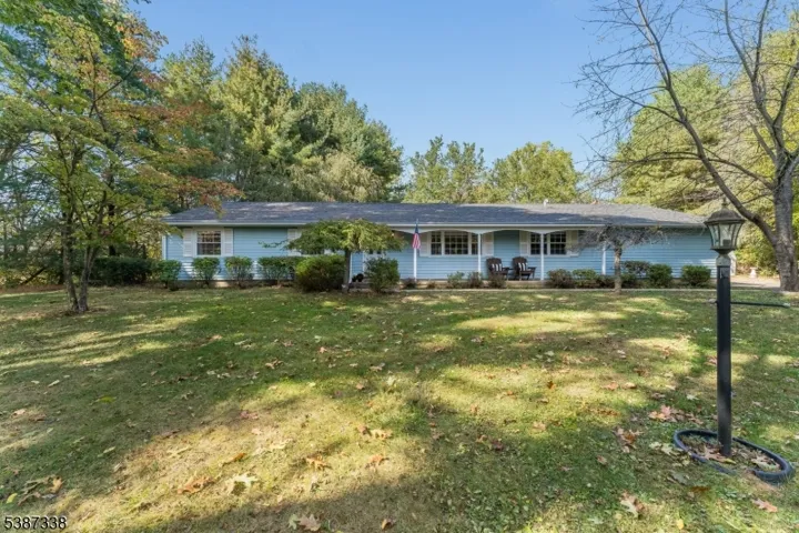 Discover effortless one-level living in this meticulously maintained, spacious 3-Bedroom 2-Bath Ranch offering over 2,200 sq. ft. of well-designed living space. Located on a nearly one-acre private lot, this home offers a flexible floor plan ideal for daily living and entertaining. Enjoy multiple defined living spaces, including a formal Living Room, a formal Dining Room, and an expansive Family Room complete with a wet-bar. The home maximizes efficiency with a functional Eat-in Kitchen, a dedicated Laundry Room, and a convenient Mudroom. The Primary Bedroom features an ensuite Bathroom and walk-in closet. A multitude of well-placed windows and French doors fill the layout with continuous, bright natural light. The private exterior is an established outdoor oasis, featuring a rocking chair front porch, an oversized deck, and a charming screened-in gazebo, perfect for entertaining and relaxation. Ample storage is provided by a large storage shed and an oversized 2-car garage. Peace of mind is guaranteed with a whole-house generator system, ensuring continuous comfort and power. Updates include Hot Water Heater (2024), Septic Repairs (2018), Well Pump (2017), Roof (2015), Gutters and Gutter Guards (2018). Located just minutes from Route 78, providing convenient access to commuter routes, shopping, recreation and dining in Warren and Hunterdon Counties. Spacious, convenient, and move-in-ready, this home truly has it all!
