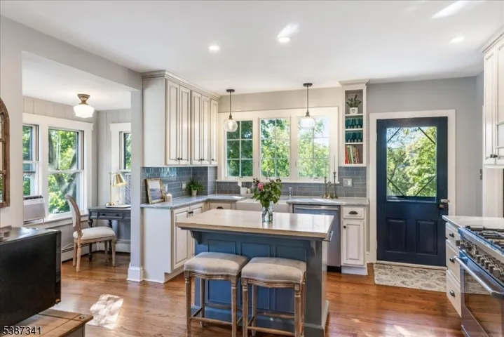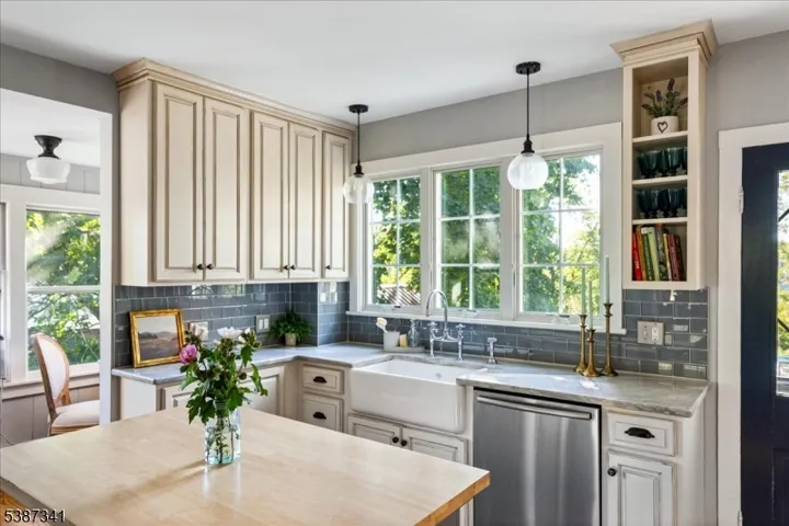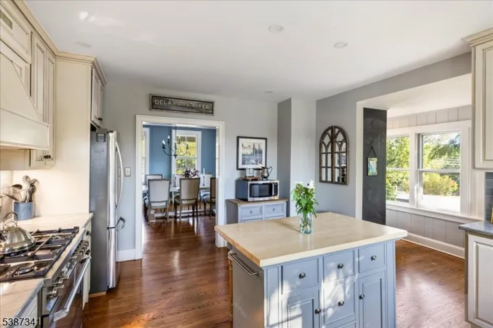 Just up the street from Frenchtown’s downtown & a short stroll to shops, restaurants, galleries, outdoor adventures & the Delaware River, this storybook Victorian home provides a beautiful retreat w/large backyard. Inside, the bright house spans roughly 2,200 sq. ft., offering 4 beds & 1.5 baths, w/high ceilings, historic character details & wood floors. At the heart lies a center hall from which a striking double staircase ascends, w/formal dining room on one side & generously sized living room on the other. The primary bedroom w/a large, custom closet commands space upstairs, along w/3 additional bedrooms sharing a spacious bathroom w/laundry closet. The kitchen has been renovated w/modern finishes, Bali Blue quartzite countertops, glass tile backsplash, Bertazzoni range, triple-casement window, expansive cabinetry & storage, plus office nook. A charming patio overlooks the lawn leading to the above-ground saltwater pool w/built-in deck. Amenities include: outdoor shower; walk-out basement; detached garage & small barn perfect for a studio; porches to enjoy sunsets & quiet mornings. Slate roof passed inspection in 2023. The combo of privacy & walkability to town makes this unique home ideal for a full-time residence, weekend-getaway house or vacation rental property, and river trails beckon just beyond your door for biking, running, kayaking, etc. For those who appreciate both historic charm & modern, thoughtful renovation, 1 Cedar Street is a rare jewel. Not in flood zone