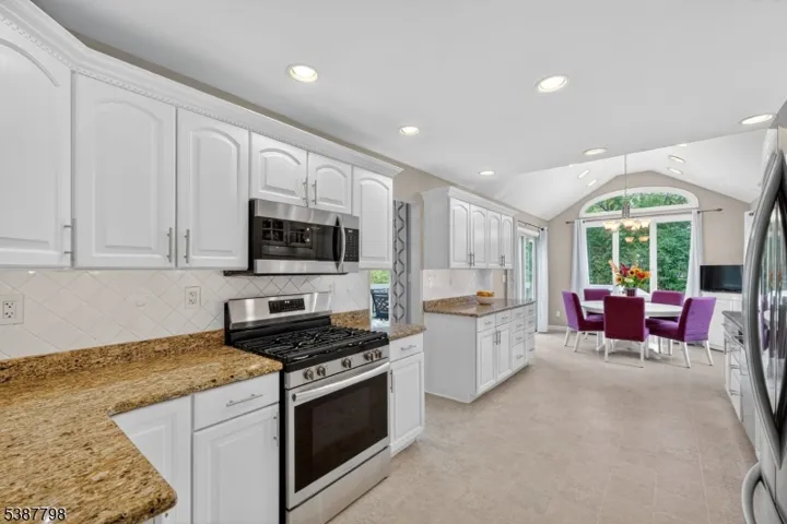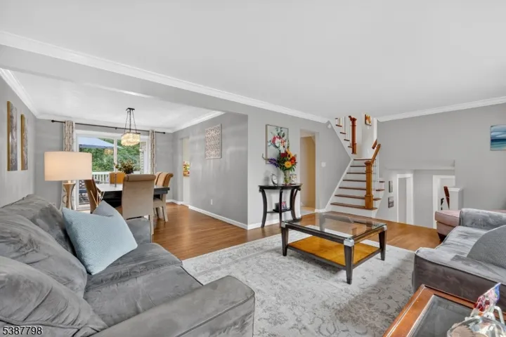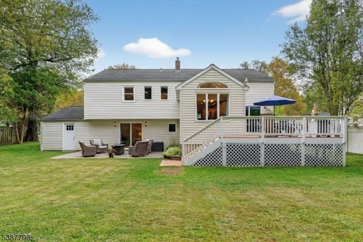 Wow! 54 Badgley will impress you from the moment you pull up to this meticulous home! They say “the kitchen is the heart of the home” and it speaks true for 54 Badgley! The 1st floor offers a large living room with an abundance of sunlight and an open floor plan to the dining room and the kitchen. The expanded kitchen offers granite counter tops, custom cabinetry, stainless steel appliances and a stunning eating area accented by a cathedral ceiling and windows on three sides overlooking the yard, deck and patio (this area is ideal for dining, game night or entertaining!) Both the dining room and kitchen offer egress to the private trek deck. The ground floor offers a gracious foyer, large family room with egress to the patio, custom built-in cabinet with lighting, the 5th bedroom (also suitable for home office) and a powder room. Upstairs are three bedrooms inclusive of the primary suite and a full bath. The third level offers another spacious bedroom with custom built-in cabinets/closets (currently used as primary). The basement is all set for conversion to a recreation room or home gym! The outside is the perfect set-up for entertaining with a large private yard, spacious patio and deck. Let’s talk about location!!! Just 0.25m to Salt Brook Elementary, 0.5m to NP Train Station and bus to Port Authority, 2 blocks to Lions Park playground and 0.75m to New Providence’s vibrant downtown restaurants and small businesses. Welcome home!