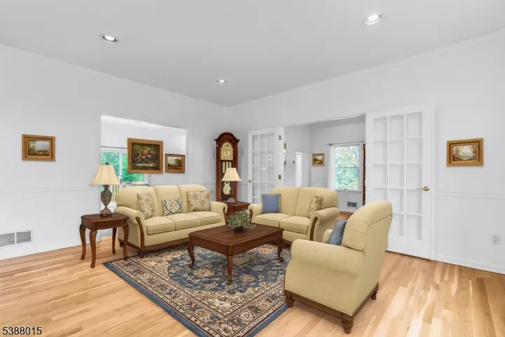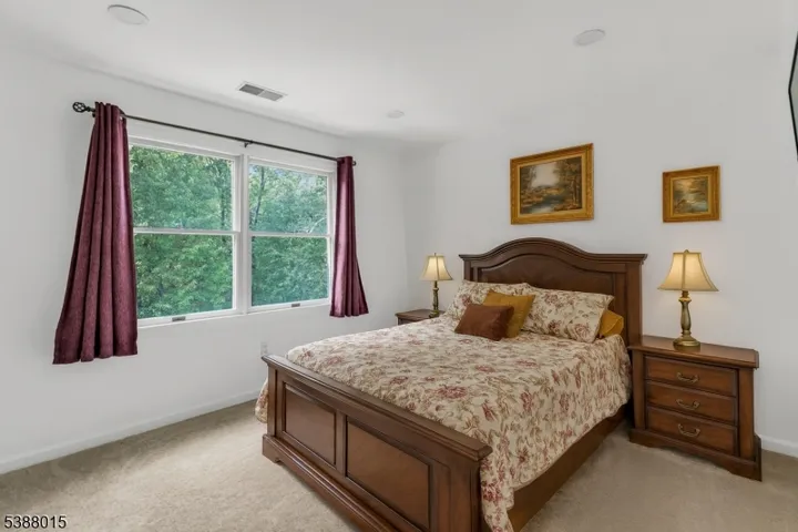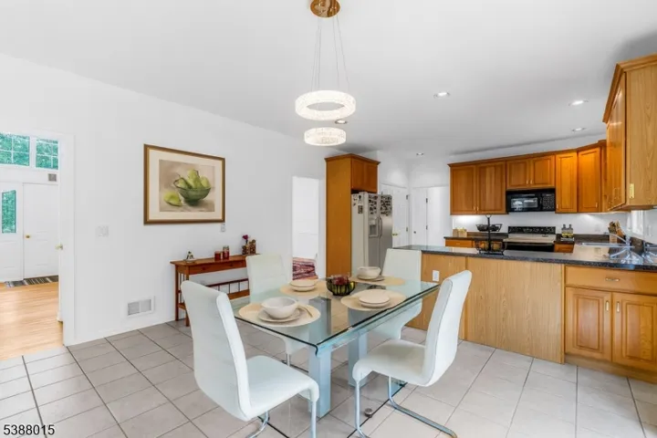Welcome to this beautifully updated brick front colonial set atop the scenic Sourland Mountains. The home has been freshly painted throughout and features newly finished hardwood floors, new carpeting, and a bright two-story foyer with stunning windows and chandelier. The spacious kitchen offers a newly installed reverse osmosis filtered drinking water system, a full pantry, ceramic tile flooring, and sliders to the freshly stained deck overlooking a private wooded setting. The adjoining family room includes a skylight, brick fireplace, and deck access, while formal dining, living, and library spaces provide great flow for entertaining. Upstairs, the primary suite boasts a large walk-in closet and spa-like bath with double sinks, jetted tub, skylight, and stall shower. All bathrooms have been updated with new toilet, sink and faucets and all bedrooms include newly installed recessed lighting. Additional highlights include a brand-new HVAC system, new driveway and walkway, and versatile first-floor office and laundry/mudroom. 2 Car garage is also freshly painted with included storage shelving. New state of the art ADT security system. Move-in ready with modern updates and classic style!