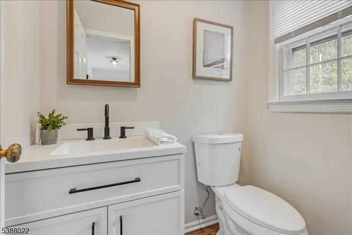 Welcome to this beautifully updated 4-bedroom home set on 1.24 private acres with mature trees, a covered front porch, and serene surroundings. The first floor is designed for everyday comfort and entertaining with an updated kitchen featuring new countertops, mostly new appliances, pantry and new flooring. A breakfast bar and dining area overlook the deck and backyard. The family room offers hardwood floors, built-in cabinetry and shelving, and a wood-burning fireplace with raised hearth, brick surround, and a charming closet for firewood storage. A powder room and mudroom with new flooring and direct deck access add convenience. An additional living/family room on the main level, complete with hardwood floors, closets, and an adjacent full bath, provides versatility as a first-floor bedroom, guest suite, or office. The foyer also boasts hardwood floors and a welcoming feel. Upstairs, four spacious bedrooms with hardwood floors include a primary suite with walk-in closet. Two bedrooms are connected by a Jack & Jill bath designed with separate sink and toilet areas plus a central shower room with linen closet, offering both privacy and practicality. Fresh paint and new light fixtures throughout enhance the home’s inviting feel. Outdoors, enjoy the large deck, mature landscaping, and the peaceful setting, all within close proximity to Chester’s shops, dining, and top-rated schools.