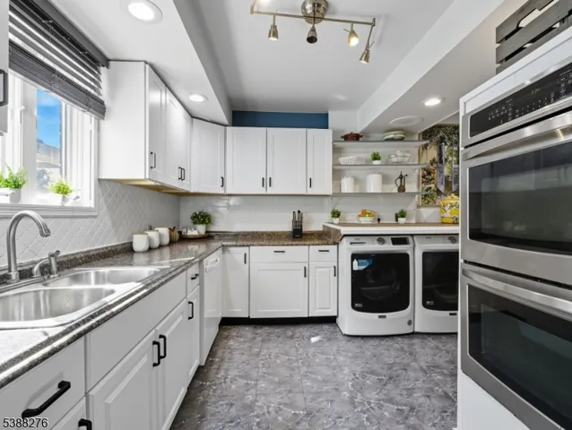 Welcome to this beautiful home offering a perfect blend of character and modern convenience. Step inside to discover a warm and inviting living room highlighted by a stone fireplace, wood-style flooring and recessed lighting. The seamless flow continues into a renovated eat in kitchen featuring crisp cabinetry, stainless steel appliances, and the convenience of in-kitchen laundry with full-size washer and dryer. Natural light fills every room, including a versatile dining room with sliding doors that open to the backyardideal. Upstairs you’ll find 3 bedrooms with ceiling fans, and ample closet space. The bathrooms have been tastefully updated with sleek tile, a modern shower, and quality fixtures. Outside, enjoy a private, fenced-in yard perfect for entertaining with a patio, deck, and room to relax. Additional features include a newer electric panel, efficient baseboard heating, and thoughtful upgrades throughout. Parking is never an issue with a large driveway that accommodates multiple vehicles. Located in a desirable neighborhood, this home is close to schools, shopping, dining, and major highways offering both convenience and community. With its thoughtful renovations, charming details, and functional layout, This move-in ready home is a wonderful opportunity for today’s buyer don’t miss your chance to make it yours!