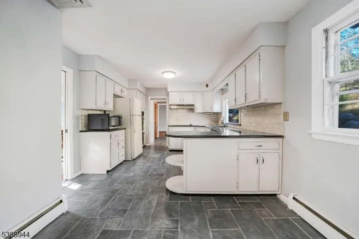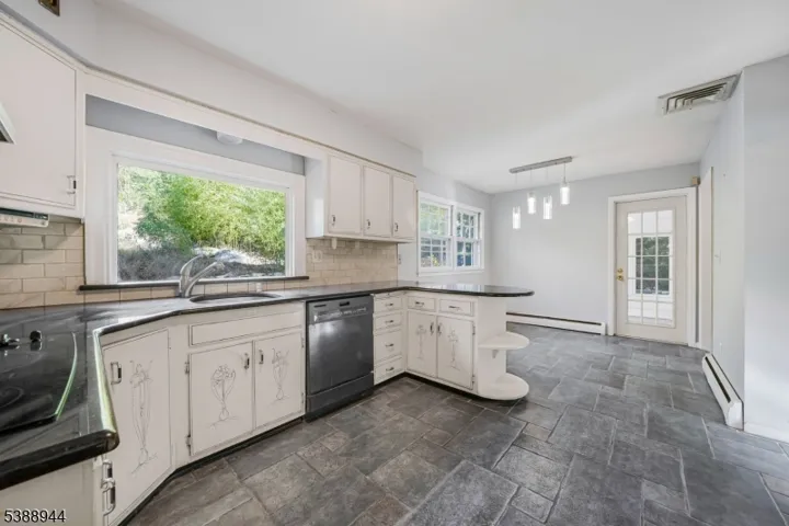 Nestled in a prime location in sought-after Lake Valhalla, this spacious 4-bedroom, 2.5-bath colonial offers seasonal lake views and timeless charm. Hardwood and slate floors flow throughout the home, complementing the inviting eat-in kitchen, which features a large picture window overlooking the paver patio and wooded backdrop. Just off the kitchen, a screened-in porch leads to a spacious deck with built-in benches perfect for enjoying the outdoors in any season. The formal dining room and sunlit living room provide ideal spaces for entertaining, while the cozy family room features a brick wood-burning fireplace and built-ins. A convenient powder room and laundry room complete the main level. Upstairs, you’ll find four generously sized bedrooms, including a primary suite with a private bath, along with a full main bath. The finished lower level adds even more living space with a rec room, side bar, and warm wood paneling. Located just a short walk to Lake Valhalla and close to top-rated schools, transportation, shopping, and fantastic local restaurants, this home blends comfort, character, and convenience in one exceptional package.