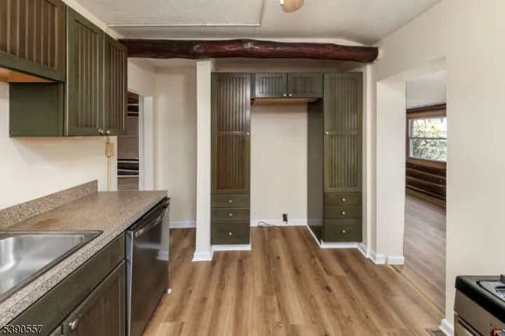 Pinecliff Lake 2 BR Log home with an open floor plan. New Bathroom, Entire home has new Luxury Plank Laminate Flooring. Entire home freshly painted inside and out! Features formal dining room, wood burning stone fireplace, vaulted ceiling and an updated kitchen. Two bedrooms and a den on main level. Upper level features a loft, a catwalk and attic storage. Master BR features walk in closet and full bath w/ stall shower. Newer septic and roof, generator connection and washer/dryer. Deck off kitchen to enjoy the serene outdoor scenery as well as a nice yard.