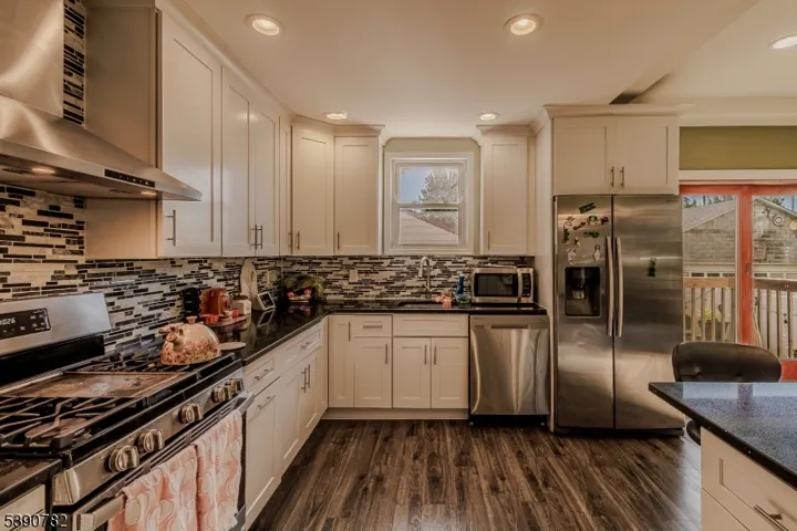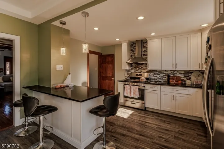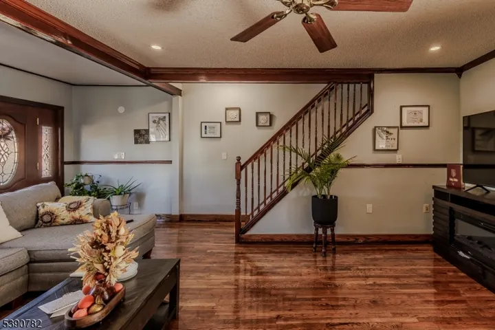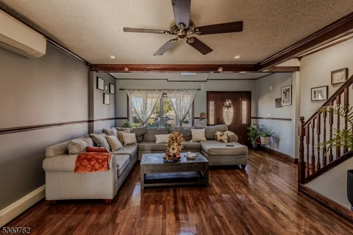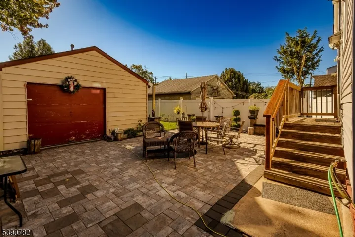 This well maintained property, with a great layout for entertaining. The large sun filled living room welcomes you into the home, with different ceiling heights that accent the room with an interesting design. Large kitchen work station. The sliding doors area convenient exit for entertaining outside to the rear yard and access to the one car detached garage. This property offers 3 bedrooms in the second floor and a full bathroom. an extra space in the attic, can be used for office or play room .The basement is completely finished, with half a bathroom. easy to commute, to NY. close to all major transportations. Come and felt in love with this beautiful property.