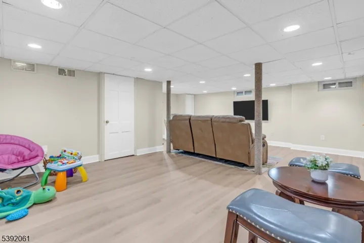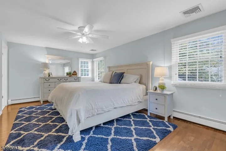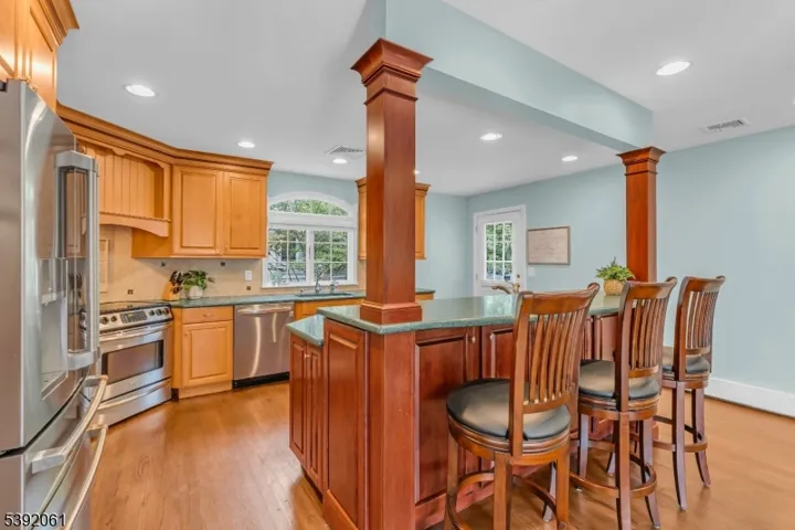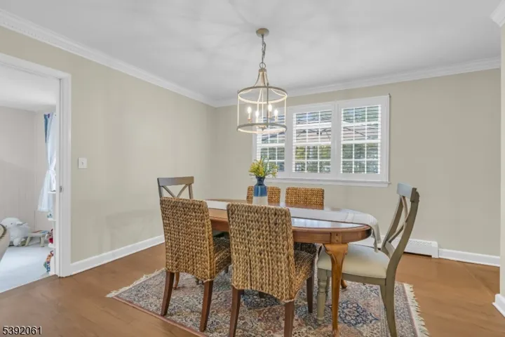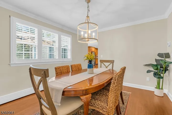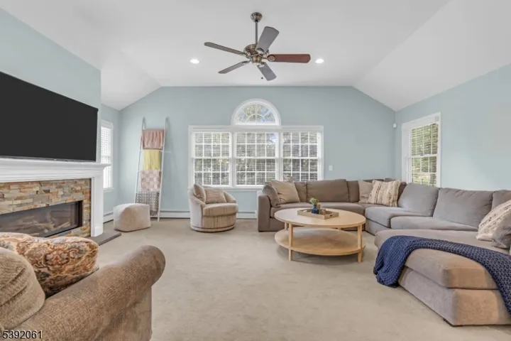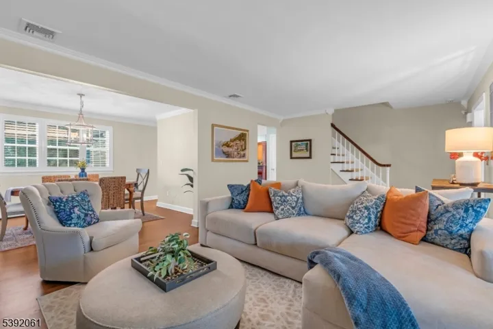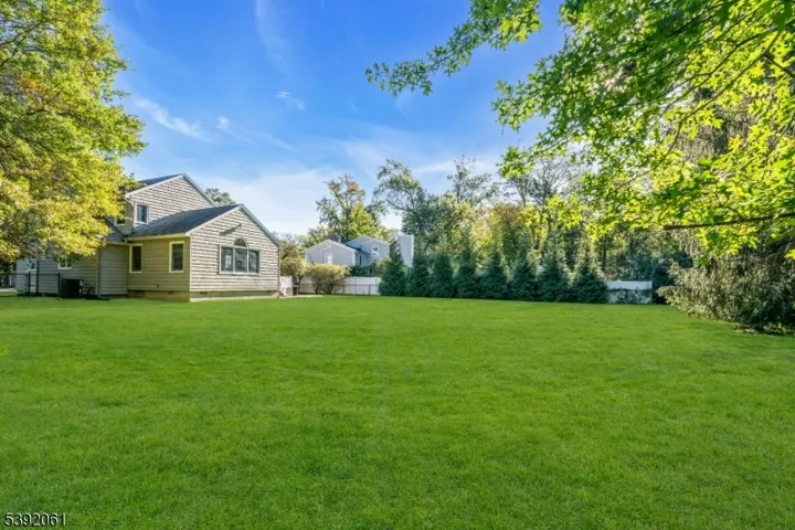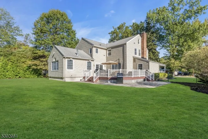 Tucked within one of Scotch Plains’ most desirable southside neighborhoods in the Coles Elementary district, the setting captures the spirit of a small community surrounded by nature and a true sense of belonging. Set on a generous half-acre level lot, the expanded Colonial makes an inviting first impression with its wide wraparound front porch. Inside, the first floor flows seamlessly from the formal living room with gas fireplace, built-in shelving, and plantation shutters into a large chef’s kitchen with a two-tier island and breakfast bar. The kitchen opens to a casual dining area and family room with vaulted ceilings, a second gas fireplace, and a wall of south-facing windows overlooking the backyard and filling the home with natural light. The formal dining room connects to a den – ideal for an office or playroom – while a mudroom off the garage adds laundry and convenience. Upstairs are five bedrooms, including an oversized primary suite with walk-in closet and double vanity bath. The finished basement offers a large rec room, utility room, and multiple storage areas. Outside, a spacious composite deck steps down to a paver patio overlooking a private fenced lawn with sprinkler system and mature trees and landscaping. Premium utilities include a direct-vent boiler, hot-water baseboard heat, and central air. The walk-up attic and generous closets throughout provide ample storage. All of this in a wonderful neighborhood that truly feels like home.
