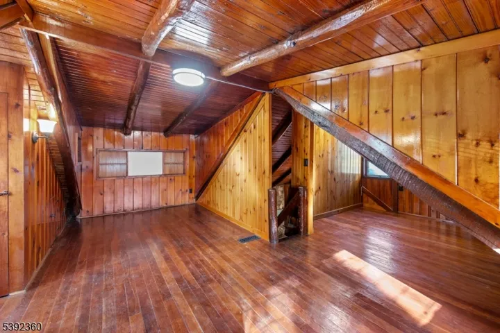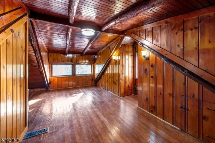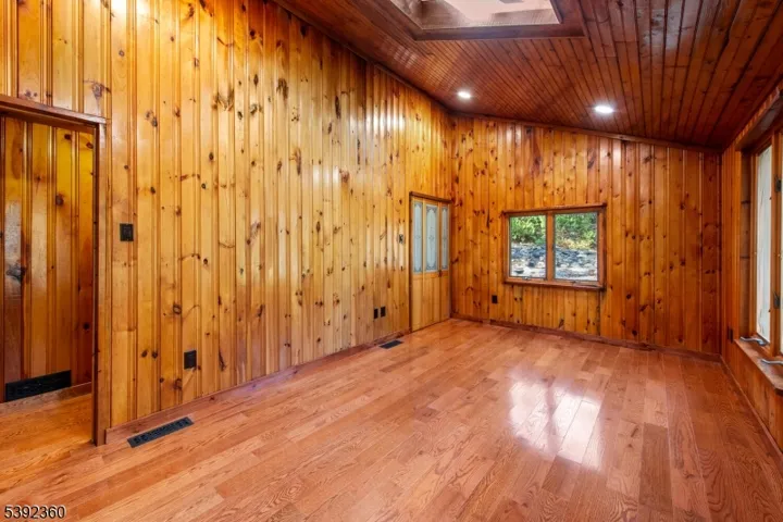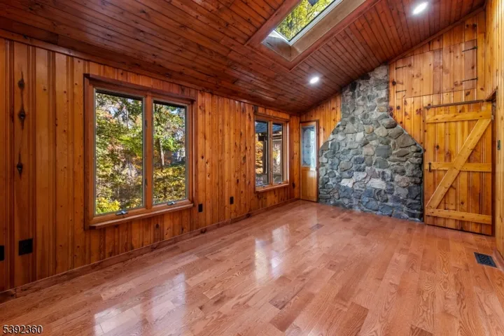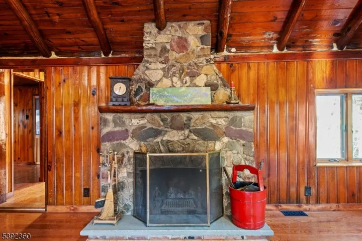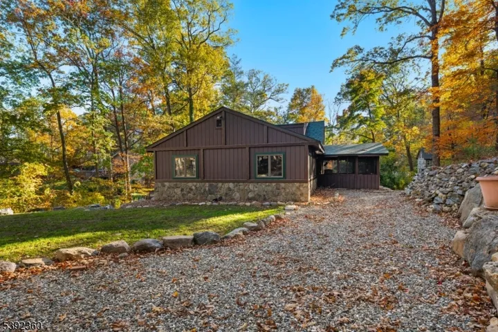 Enchanting chestnut log cabin home, tucked away at the end of a quiet road, is backed by the Abraham Hewitt State Forest & hiking trails. This special cottage, set on a private 1/2 acre of property, started life in 1935, & has been well cared for and tastefully updated over the years. Step inside into the large enclosed three season porch, w/ gorgeous original slate flooring, great for relaxing w/ a good book & a glass of wine. .Beautifully updated kitchen w/ hickory cabinets, Wolff range, quartz countertops,The new bathroom, w/ custom tiled shower is fabulous. Walk into the great room, w/ a wall of windows, dining area & a living room w/ vaulted ceilings, & original fieldstone fireplace. There’s even a cute custom bar built under the stairway! Walk down the hallway to your large primary bedroom w/ vaulted ceiling & skylight. There are three additional bedrooms on this level. Cozy knotty pine & five inch oak hardwood flooring throughout! The logstyle stairway leads up to a wonderful enclosed loft, w/ two rooms, perfect for your guests or your imagination. New Roof less than 1 yr old. The finished basement has a hang out room, small ‘garage’ for your toys, laundry & utility room. Outside is your private backyard w/ stone firepit, surrounded by a canopy of trees & nature. The Lakeside Community Club is steps down the hill, w/ a clubhouse, beach, kayaking & dock priviledges. A short walk to the NYC commuter bus! New septic at closing. Don’t miss this one!