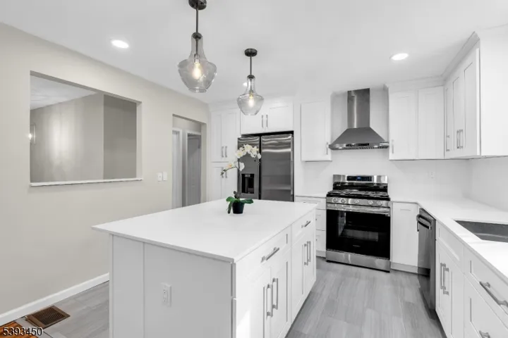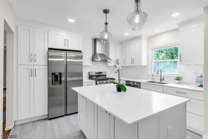Welcome to this custom-designed Colonial offering nearly 3,000 square feet of finished living space plus an 845 sq ft partially finished basement, perfect for a home gym or recreation area. With 5 bedrooms, 2 full baths, and a dedicated home office, this home has been thoughtfully renovated throughout. The upper level features an open-concept chef?s kitchen with a quartz island, soft-close cabinetry, and new stainless steel appliances that flow into the dining and living areas. A dramatic bonus room with vaulted ceilings, skylights, and a floor-to-ceiling stone fireplace adds warmth and character. The primary ensuite includes a walk-in closet and beautifully remodeled bath with dual hall access.Downstairs, you?ll find a family room with French doors leading to the deck and wooded backyard, two bedrooms, home office, stylish full bath, and mudroom. Hardwood floors extend throughout most of the home, complemented by new carpeting in the lower-level bedrooms and office, and durable tile flooring in the kitchen and bathrooms.Additional updates include a new electrical system, updated lighting, and air conditioning with a new outdoor condenser. A 1-car garage plus 2-car driveway provide parking for three vehicles. Two expansive decks overlooking serene woods offer a private retreat close to parks, schools, shopping, and NYC transportation.