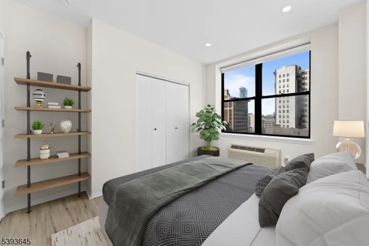 Experience modern city living at it’s finest in this beautifully renovated 8th floor corner condo at Renaissance Towers, located in the heart of Downtown Newark. This bright, stylish and JUST RENOVATED condo features brand new luxury vinyl floors, recessed lighting, soaring ceilings, and wraparound oversized windows that fill the space with natural light and offer private, open views. The galley style kitchen offers quartz countertops, soft close shaker cabinets, and stainless steel Whirlpool appliances with a one year warranty. The updated bathroom showcases a new vanity and LED anti fog mirror, while every room has been freshly painted for a crisp, contemporary feel. Residents enjoy 24/7 concierge service, a fitness center, sauna, and valet parking (available for an additional fee), all within a secure, well maintained building. Just minutes from Newark Penn Station (only 15 minutes to NYC), Prudential Center, NJPAC, Seton Hall Law, and Whole Foods, this condo offers unmatched access to arts, entertainment, dining, and transportation. Perfect for a modern full time or satellite residence, this move-in ready condo deliver’s style, comfort, and city living at its best. Be the first to enjoy this completely renovated unit in the highly desirable Renaissance Towers.
