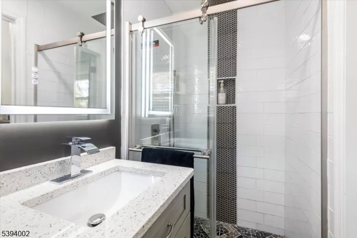 Nothing to do but unpack your bags and move in! Totally renovated bi-level in Totowa. First level features 3 good sized bedrooms, updated eat-in kitchen w/ breakfast bar, quartz counters, tile back splash, stainless steel appliances & beautiful ceramic tile floors. Living Room w/recessed lighting and new bay window, Formal Dining Room with w/sliders to deck, Hardwood floors throughout, Pull Down attic with steps, Primary Bedroom w/primary bath, which offers double vanity &separate stall shower. Ground floor, which walks out to patio offers large family room, vinyl laminate floors, an office, bar, laundry area and full bath. Nice sized private backyard with vinyl privacy fence. 1 Car Garage, parking for up to 4 cars in driveway. new windows(except for DR), newer roof, new front steps. 200 amps electric. Close to major highways, shopping and transportation. Your search ends here. Absolute mint condition! Refrigerator in kitchen not included. Refrig on lower level will stay.