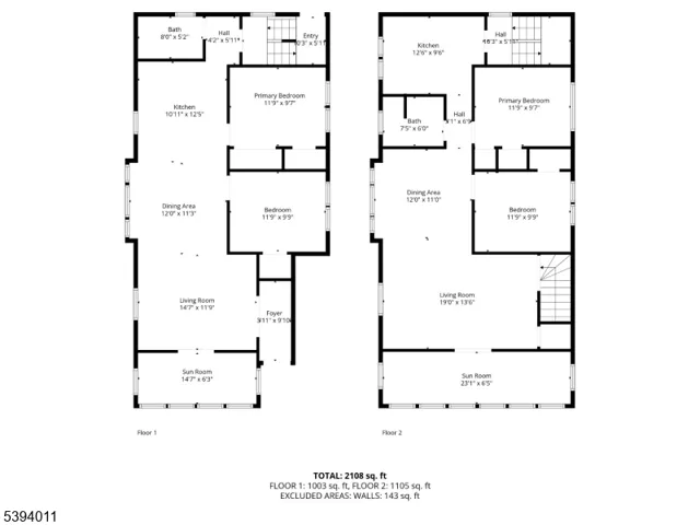 Prime Location! Perfect for Owner Occupants or Investors. This bright and spacious two-family home was fully updated in 2022. Both unit features a den (could use as office /sunroom), an open-concept living room/dining room/kitchen w /an island/quartz countertop/white cabinets/stylish backsplash/stainless appliances, 2 bedrooms with ample closet, and a bath. Unfinished high basement. Big attic with lots of potential being used for storage now. Fenced backyard. Driveway for 3 cars. Close to Rutherford Downtown with shopping, dining, and NJ Transit-Rutherford Station. Easy commute to New York City by public transportation or by car. Short distance to the bus stop (191,192,195, and 199).near Rt.3,17,46, New Jersey Turnpike. A MUST SEE!!!