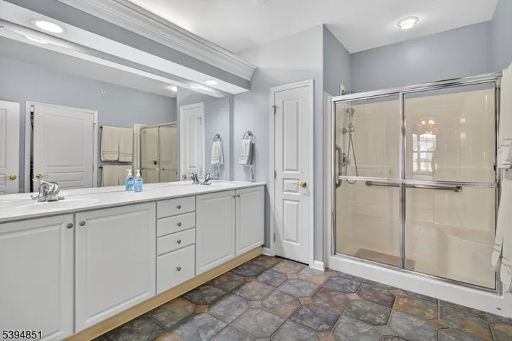 ALL DONE! 2020: Wide plank hardwood floors in Entry, LR, DR, Den & hallways AND neutral paint. HVAC: 2023, Water Heater: 2025. Generous kitchen hosts table for four w/GRANITE CTPS, custom backsplash, maple cabinets w/designer doors, undercounter lighting, SS appliances w/2020 better refrigerator, double pantry w/California style cabinets, porcelain & brass chandelier in Dining Room, Hunter Douglas verticals in LR & shades in Primary BR. Custom, upgraded tile floors in kitchen & baths. Ensuite Primary Bedroom boasts tray ceiling, full bath w/over-sized shower sta ll plus seat, linen closet, double vanity, “water closet . Walk-in closet fitted with California style cabinets. Dedicated, keyed, storage closet down the hall. TWO GARAGE SPACES! SOMERSET RUN is an active & inclusive Over 55 community offering a 25,000 S.F. clubehouse w/ indoor & outdoor pools, hot tub, billliards, exercise, art, card, game & ball rooms.. Lots of clubs, events & activities. Minutes to major highways, NJ Transit & Suburban Bus Line to NYC, excellent healthcare, theater, fine restaurants & Big Box stores. JOIN US! Garage Spaces: 43& 44,Storage Rm: #28