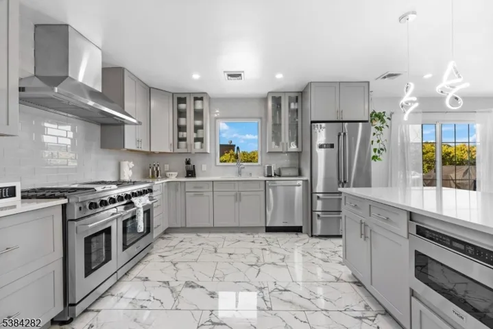 Welcome to Montclair Heights one of Clifton’s most sought-after neighborhoods. This beautifully updated 4-bedroom, 2-bath bi-level home offers over 2000 sq. ft. of versatile living space, perfectly designed for today’s lifestyle.Step inside to discover modern upgrades throughout: Brand new electrical system with 200-amp service, updated wiring, and a 2022 tankless water heater that comes right off the finished garage Stunning porcelain tile floors, custom lighting, and a sleek electric fireplace Chef’s kitchen with shaker cabinetry, quartz countertops, subway tile backsplash, and premium Thor appliances Smart-home features including app-controlled garage door opener, security camera system, and in-wall cable connections Hardwired smoke & carbon monoxide detectors for peace of mindThe flexible layout includes two bedrooms on each level, ideal for an in-law suite, home office, or private guest space complete with a separate entrance. Both full bathrooms are upgraded with modern finishes and even Bluetooth speakers for a luxury touch.Outside, enjoy easy entertaining with a composite deck (water-protected underneath), new fencing, paver patio, and an above-ground pool. Plenty of storage with a one-car garage, attic, and additional driveway parking.Located just minutes from major highways, NYC transportation, and Montclair’s restaurants and shops this home truly has it all.