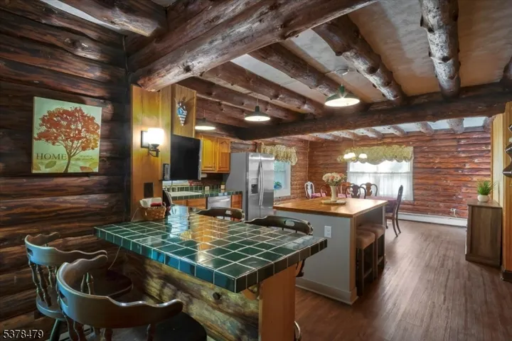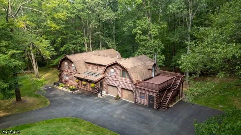 Experience the unique opportunity to own this well-maintained log home, perfectly set on 2.2 acres of secluded land, offering exceptional privacy. Step inside to a passive solar room filled with natural light, seamlessly flowing into a cozy living room with a wood-burning stove. This inviting space extends to a wrap-around deck, where you can unwind in the hot tub. The deck and backyard create an idyllic setting for entertaining with summer BBQs or simply soaking in the tranquil surroundings. The generously sized kitchen is a chef’s delight, featuring a breakfast bar, newly built butcher block island, and open layout to the dining area, perfect for gatherings. Additional living space is found in the billiard room, complete with a custom bar, ideal for hosting. This versatile home offers 2 kitchens, 4 bedrooms, 2 full baths, and a half bath. It can function as a spacious 4-bedroom residence or be adapted into a separate in-law suite with 2 bedrooms, bathroom, living room, kitchen, and private deck entrance. Modern comfort is ensured with 4-zone heating and 3-zone A/C. The property also includes a 2-car garage with workshop area, perfect for projects and storage. Recent updates include new roof (3 years), newer skylights, paved driveway, hot water heater, and new hot tub replaced August 2025. Located in sought-after Rockaway Township, this home offers the perfect blend of privacy and convenience near hiking, fishing, shopping, dining, top-rated schools, and Routes 80, 23 & 46.