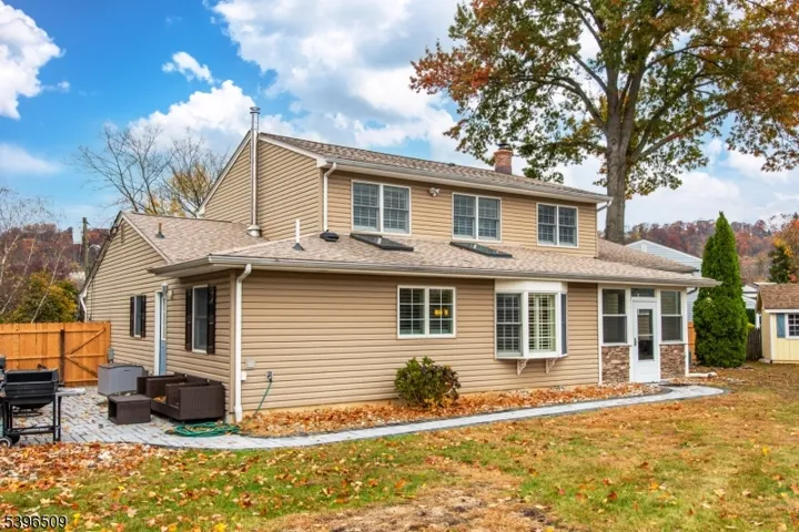 Turn key ready home located on a quiet cul-de-sac. This well-maintained 3 bedroom 2.1 bath home can easily be converted to 4 bedrooms. Kitchen addition (20×20) with center island, SS appliances, range top, wall oven, microwave, granite counters, skylights, pantries and radiant floor heating make this space a delight for entertaining. Kitchen open to family room with wood burning stove creating a warm environment for winter nights. Hardwood floors in living and dining rooms flow through French doors to 3 season porch. First level completed with laundry, mud and powder rooms. Second floor features 3-4 bedrooms, all with hardwood floors. 4th bedroom can easily be converted back. Primary w/ en suite. Finished basement affords flex space for office, work outs or TV. Ample storage throughout. Fresh paver patio invites outdoor living with hot tub. Large level lot with storage shed. Custom plantation shutters on windows. New roof & skylights 2024. New furnace 2022 for peace of mind. Water heater 2018. Family room windows replaced. Chimney restored. Front fence replaced 2024. Convenient location with easy access to Rt 22, 287 & 78. Newark airport nearby with easy access to shopping and restaurants. House is NOT located in a flood zone.