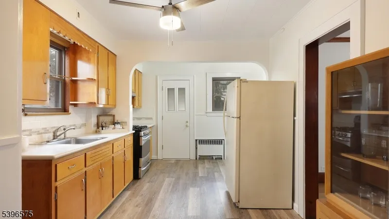 Nestled on a quiet, tree-lined street, this charming residence perfectly blends timeless character with modern updates. From the moment you step inside, you’ll be greeted by beautifully refinished wood floors that flow gracefully throughout, complemented by rich chestnut trim and freshly painted walls that bring a bright, inviting feel to every room. The updated eat-in kitchen features a new vinyl floor, sleek ceiling fan, stylish subway tile backsplash with tasteful accents, Corian countertops, and a stainless steel oven the ideal setting for both everyday meals and weekend baking sessions. A formal dining room adorned with classic moldings offers generous space for hosting gatherings and dinner parties. Step outside to enjoy the lovely yard, perfect for relaxing, entertaining, or gardening, along with a convenient one-car detached garage. Located just moments from downtown, major highways, and local conveniences, this home combines charm, comfort, and an unbeatable location. Close to Train, library and schools. Chimney, flue, and Garage conveyed in “as is” condition.