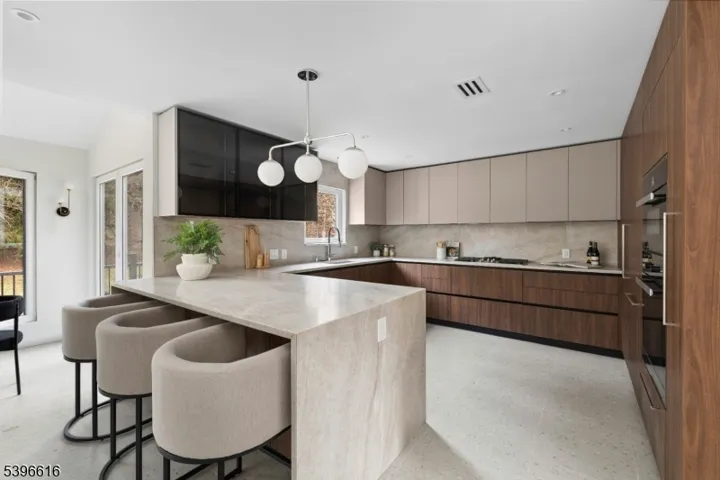 This fully reimagined luxury residence offers exceptional privacy and modern sophistication just five minutes from Morristown Center, Whole Foods, and mass transit. A long driveway leads to an impressive three-car garage with CHI doors. Every detail has been thoughtfully built, including mechanicals, plumbing, and electrical systems. The home features six bedrooms, five and a half baths, multiple gas fireplaces, and European windows providing superior insulation and comfort. The custom Italian kitchen includes paneled Miele appliances,a hidden vented hood, and a Taj Mahal honed quartzite island and backsplash.The primary suite boasts elevated ceilings, a spacious Pianca custom walk-in closet, and a spa-inspired bath shower system, stone double vanity, Toto toilet, and solid soaking tub. A full finished basement, European composite deck, and manicured landscaping complete this remarkable reimagined home that blends timeless design with modern luxury.