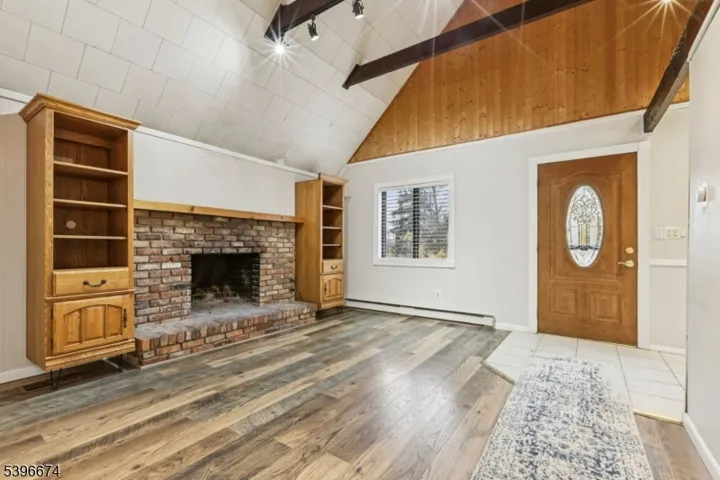 Charming A-Frame Retreat with Stunning Views & Thoughtful UpdatesNestled atop a scenic hillside in Vernon, this distinctive A-frame home at 16 Winding Hill Rd offers both character and modern comfort. Step into the sun-filled living room, where high ceilings, a striking fireplace, and brand-new flooring set the tone for relaxed yet refined living. The adjacent eat-in kitchen has been beautifully updated ideal for casual meals or entertaining.On the main level you’ll find two spacious bedrooms and a full bath, while upstairs awaits a bright and airy master suite complete with a walk-in closet and elevated vantage point. The finished lower level adds even more versatility with a cozy den, two bonus rooms, an updated full bath, laundry room, and sliding doors that open to the expansive backyard.Outside, the large lot offers breathtaking panoramic views, ample space for outdoor enjoyment. Located in the sought-after Pleasant Valley Lake community, this home blends retro charm with thoughtful modern updates don’t miss the chance to make it your own A-frame retreat.