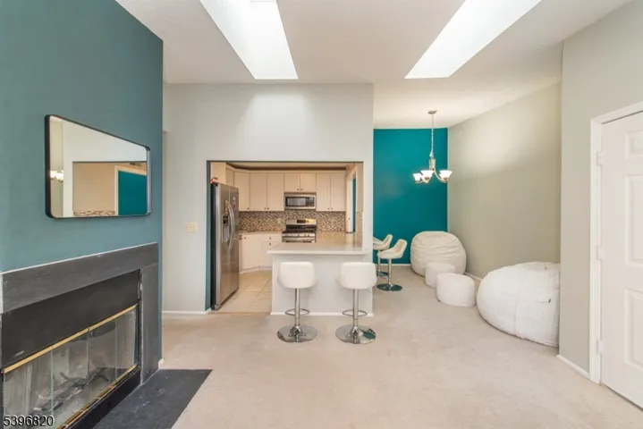 Beautiful penthouse at Woodland Hills in Lincoln Park! The unit provides an open concept with lots of natural light! This pet friendly 2 bedroom/2 bathroom unit features vaulted ceilings, skylights, a fireplace, along with an in unit washer and dryer. The kitchen has white shaker cabinets, stainless steel appliances, quartz countertops, tile backsplash. The dining room area flows right into the large living room, followed by your own private balcony. The Primary Bedroom has a large walk-in closet and your own en suite, Full Bathroom in the hallway along with the 2nd bedroom. There are assigned parking spots in front of the unit. Also, many amenities, including pool area with gas grills, volleyball court, playground, clubhouse, and more!!! The entire complex is situated in a quiet setting, with approx 1,100 acres of preserved land, while still close to public transportation, highways, restaurants, etc.