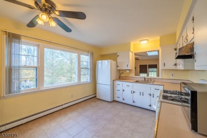 Spacious 5-bedroom home on a 0.36-acre lot in Vernon Township offering a flexible layout with 2 first-floor bedrooms and a full bath, plus 3 additional bedrooms and another full bath upstairs. The main level features a two-story living room with a cathedral ceiling, hardwood floors, and a bay window providing natural light. An eat-in kitchen with gas cooking, tile flooring, and a pass-through to the family room add convenience and function. The family room includes a large stone wood-burning fireplace (not currently in use), carpeted flooring, and access to the backyard through French doors. Outside, enjoy a southwest-facing elevated deck with a pergola overlooking the backyard. The home needs some TLC and offers an opportunity to update and personalize. Additional features include natural gas heat and hot water, a 2-car garage with basement space behind it, vinyl siding, and mature landscaping. Located close to Vernon amenities, under a mile to Route 23, approximately 4.2 miles to both ShopRite and ACME, and approximately 12 miles to High Point State Park, with everyday shopping, dining, and outdoor recreation all within easy reach. This home comes with a 1 year home warranty!