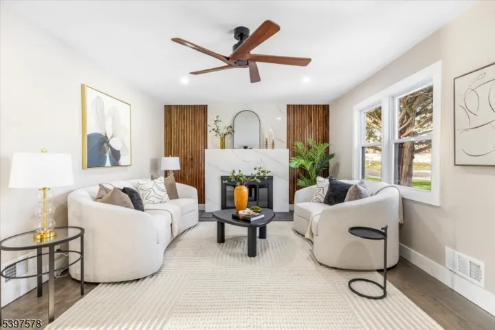 Location, Location, Location! This beautiful, move-in ready four-bedroom Cape is situated on a corner lot in the highly desirable town of Clifton, right on the Nutley border. Commuters will love the convenience, with easy access to Route 3, the Garden State Parkway, and NYC buses and trains. The main level features two bedrooms, a spacious living room with a wood-burning fireplace, a formal dining room, and an updated eat-in kitchen with a center island, new laminate floors, tile backsplash, and stainless steel appliances. A renovated full bath and access to the backyard complete this level. Upstairs, find two more good-sized bedrooms and another renovated full bath. The full finished basement extends your living space with a large family room, dry bar, wine cellar, laundry room, and storage/utility space, all with beautiful epoxy floors. Enjoy hardwood floors, recessed lighting, newer HVAC, and a private backyard perfect for gatherings. A one-car garage and parking for three additional cars in the driveway ensure convenience. All appliances stay, including the basement fridge. Home has been professionally staged. Room sizes are approximate.