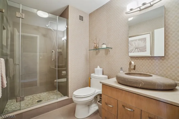 This immaculately maintained Claridge House II residence offers elevated first floor living, delivering all the advantages of a high rise with the ease of stair access and lower-level convenience. Located in a desirable corner on the first floor, the unit sits Above the tree line. This completely renovated 2-bedroom , 2 full bath unit has an open, sun filled floorplan . The eat in kitchen has all new stainless-steel appliances, Both bathrooms have modern walk-in showers, Designer finishes throughout , beautiful hard wood floors, closets with custom cabinetry, Primary bedroom has Large Walk-in closet, en-suite bathroom. The 2nd bedroom can be used as a bedroom or office with custom built ins. Washer/dryer in unit. The oversized private terrace has mountain views with Spectacular sunsets. Amenities include 24 hour doorman, valet parking, heated pool, BBQ area, tennis,pickleball,basketball court, putting green, card and party room, full gym with sauna, library. All amenities and utilities are included in the monthly maintenance fee. Minutes from Montclair, and all major highways. Commute to NYC with ease. Move Right In