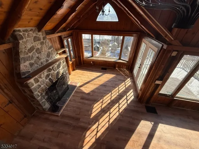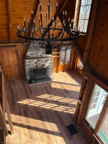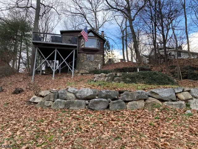 Lakeside community! TWO bedroom, large Master bedroom loft with a double closet, second bedroom with new floor and closet also, new kitchen countertop, sink, floor and newer oven and refrigerator, bathroom was updated 5 years ago and living room has some new windows, fireplace is two story high. NEW floors in the living room and the dining room, vaulted ceilings, New lighting, Bright with lots of windows, slate patio & large deck for entertaining during the warmer months, winter views of Greenwood lake are breathtaking. Basement for laundry and storage. Circle driveway also.