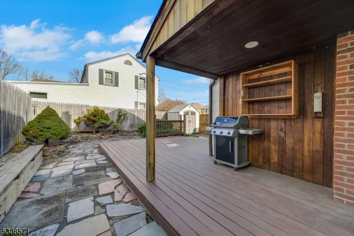 This three-bedroom, two-and-a-half-bathroom Colonial features a spacious layout with a large living room, a sizable family room, a dining room, kitchen, and powder room on the first level. The home offers approximately 1,615 square feet of living space (as per tax records) and sits on a professionally landscaped corner lot. The light and bright kitchen is equipped with updated stainless steel appliances, a breakfast bar, and access to the fenced in back yard area. A large rear deck provides an excellent space for outdoor entertaining (gas grill included in sale). The primary bedroom includes an en-suite bathroom and an adjacent office or sitting area that could be utilized as an additional bedroom if desired. Two additional bedrooms and a full bath round out the second level. Residents will appreciate the home’s central air conditioning, one-car attached garage, and two-car-width driveway. For added convenience, there is also a storage shed on the property. The home boasts several desirable features, including custom ceiling beams, a lovely built-in display cabinet in the dining room, and three bay windows on the first floor. The basement offers laundry and workshop areas, as well as ample storage. The property is located in a desirable neighborhood with convenient access to major transportation, shopping, restaurants, and schools.