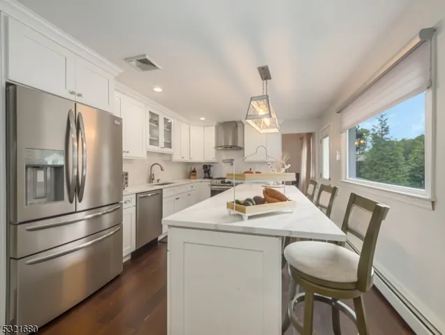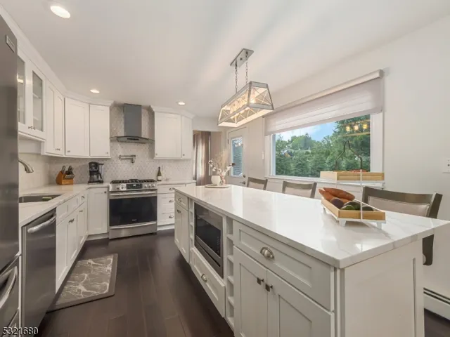 Stunning Custom Colonial/Split-Level in Wayne’s Desirable Valley Section! Welcome to this beautifully updated custom-built home that combines elegance and modern comfort. Step into the inviting foyer, where guests are greeted with warmth, leading to a cozy family room featuring a fireplace and rich wood floors. A newly renovated powder room on ground level adds convenience. The open-concept floor plan seamlessly connects the family room to an eat-in kitchen, complete with a dining area, center island with barstool seating, stainless steel appliances, stylish cabinetry, and granite countertops. A sliding door opens to a breathtaking backyard with a paver patio and in-ground pool, perfect for entertaining or relaxing. Adjacent to the kitchen, the formal dining room offers views of the spacious first-floor living room, highlighted by gleaming wood floors, a large window, and a second fireplace. The second level includes four generously sized bedrooms. The primary suite offers a luxurious bathroom with double sinks, elegant tilework, and a stall shower. A beautifully updated main bathroom with double sinks, tub/shower, and tasteful tile completes this level. The unfinished basement provides a laundry room and abundant storage. The level, fenced-in backyard is an outdoor paradise, featuring an in-ground pool, storage shed, and a paver patio with a seating area, perfect for BBQs and gatherings. Don’t miss your chance to own this exceptional home in a prime location!
