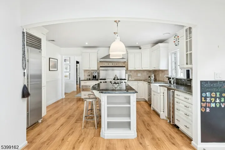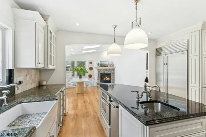 Beautifully updated and expanded modern ranch set at the end of a quiet cul-de-sac! This stunning 3-bedroom, 3-bath home offers a seamless blend of contemporary style and everyday comfort. The bright, open kitchen features Viking appliances, a Sub-Zero refrigerator, large island and custom cabinetry, perfect for cooking and entertaining. The spacious layout includes large bedrooms with generous closets, formal dining room, family room with built-ins, plus three fireplaces that add warmth and charm throughout the home. A dedicated mudroom adds convenience, while the attached 2-car garage offers additional storage and easy access. Situated on a .34-acre lot, the home boasts a large, fully fenced backyard ideal for gatherings or play. Enjoy the tranquility of a peaceful neighborhood while being just minutes from top-rated schools, parks, Cranford’s vibrant downtown, and the train for an easy commute. Move-in ready and meticulously maintained, this home checks every box! Not in a flood zone!