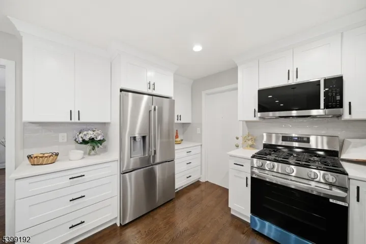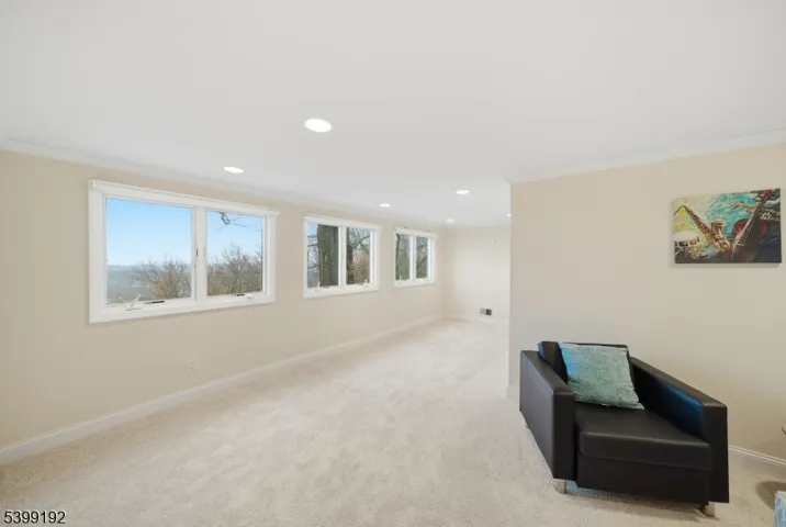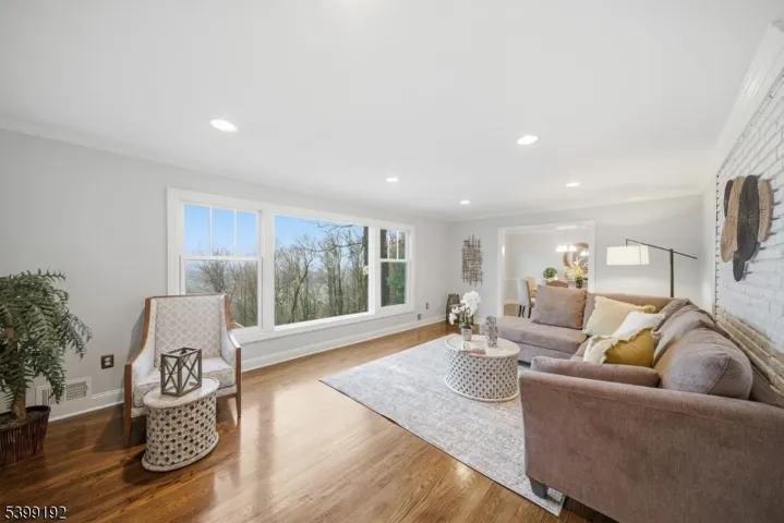 Experience one of the most breathtaking views in Morris Township – see the NYC skyline and get front-row seats to 4th of July fireworks from your living room. 66 Skyline Dr. offers space, style, and scenery in a beautifully maintained 5-bed, 3.5-bath home set in a highly sought-after neighborhood. The first level features brand new hardwood floors and a bright open-concept kitchen/living room with a brand new kitchen including quartz counters, stainless steel appliances, recessed lighting, and a freshly cleaned wood-burning fireplace. A formal dining room and family room sit just off the kitchen, creating a comfortable flow for everyday living and entertaining. Three bedrooms including a primary suite with private full bath are located on the main floor, along with a powder room, laundry room, two-car garage access, and a living room with panoramic skyline views. Upstairs offers two additional bedrooms, a flexible loft/office space, and an updated full bath. The finished basement adds an office, bonus room, and rec area as a potential gym, playroom, or media space. Outside, enjoy a newly painted rooftop-style deck overlooking sweeping views, plus a private yard with mature landscaping/sprinklers. With newer HVAC, roof, gutters, windows, public water/sewer, central A/C, Hunter Douglas window treatments, and two walkouts to the yard, this move-in-ready home sits minutes from Downtown Morristown and major commuting. Homes with views like this are rarely offered – don’t miss it.