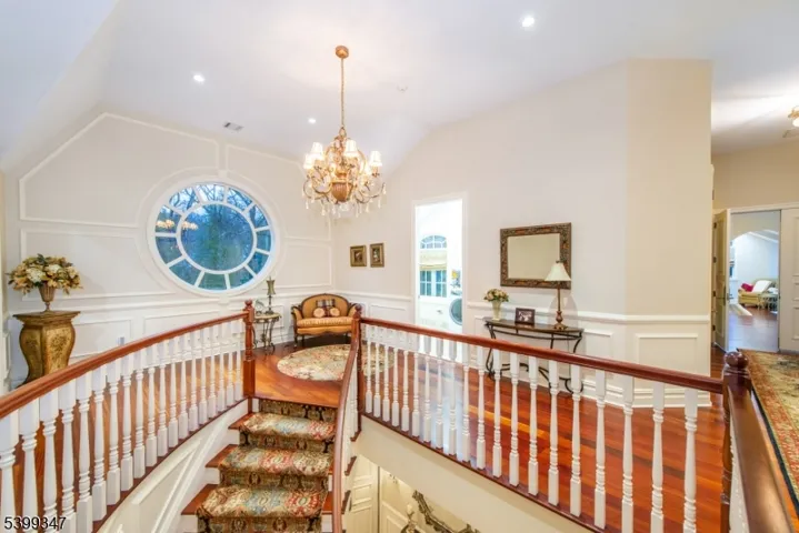 Welcome to pure perfection in the prestigious town of Essex Fells. Drive through private gates and up an impressive winding driveway to this breathtaking residence set on an expansive wooded lot w/ sweeping mountain views. Step inside to a remarkable foyer w/ a grand wrap-around staircase. To the left, a sophisticated living room awaits and to the right, a richly appointed office. The state-of-the art kitchen flows seamlessly into the dining room-with top-of-the-line appliances, custom carpentry, and fireplace. A 1st floor laundry room, easy backyard access, and stairs leading to both the 2nd floor and basement complete the main level. Throughout the home, every bathroom has been designed w/ great detail and luxury in mind. Upstairs, you’ll find 3 spacious bedrooms, each w/ its own full en-suite bath and walk-in closet w/ custom shelving. 1 bedroom includes doors leading to a private balcony. An additional laundry room is provided on this floor for easy functionality. The primary suite is a retreat in itself, featuring a private balcony, a large walk-in closet fit for royalty, and a spa-like primary bath complete w/ soaking tub, dual vanities, bidet and a shower, crafted to deliver true resort-style indulgence. The fully finished basement redefines luxury w/ a complete family room, home gym, pool and poker rooms, full bar, and wine cellar. Step outside to an outdoor oasis. Stroll through a charming trellis walkway leading to a 3-car garage, a fully equipped kitchen, brick