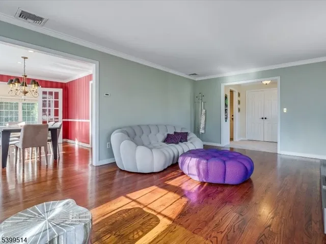 Discover an unparalleled opportunity to own a home that balances a beautiful .43 acre park-like property with modern updates. This location is 0.9 mile to the NJ Transit Train station and literally steps to schools, parks, and all that downtown Morris Plains offers. Lot is level and interesting with lovely private patio, open space to play, and amazing vegetable and flower garden. This impressive house demands a visit to fully appreciate its charm and functionality. Step inside to a welcoming entryway with double coat closet opening into a light-filled living room featuring oversized windows and hardwood floors that extend throughout the home. The heart of the home is an updated eat-in kitchen designed for easy living and entertaining, boasting granite countertops, stylish glass cabinets, and seamless access to the dining room and powder room. Enjoy flexible living spaces, including a bright sunroom addition that adapts to your needs as a family room or great room. A generous, front-to-back family room, (which could easily convert to a fourth bedroom), provides a cozy retreat with a wood-burning fireplace, laundry facilities, and ample storage. Upstairs, the primary bedroom offers a private, updated bathroom. Two additional bedrooms share an updated hallway bathroom. All bedrooms feature double closets, wood floors, and decorative moldings. Private bonus room in basement with access from garages. Public water and sewer, central air, baseboard hot water heat.Simply amazing!