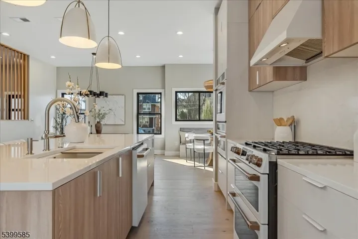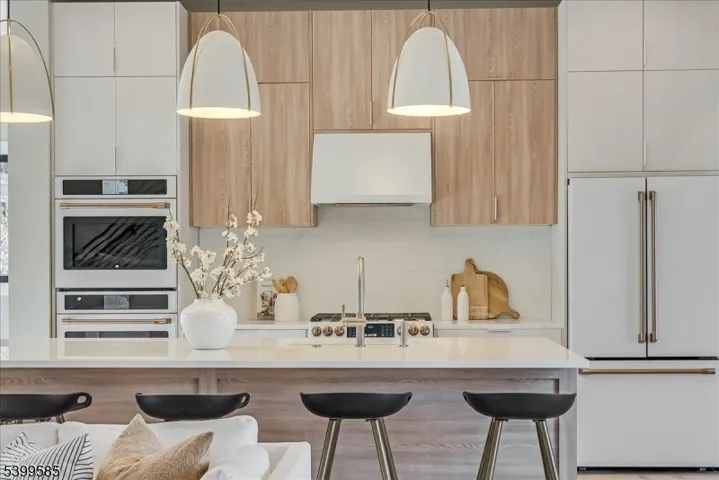 Presenting 36 James Street! Centrally located between Walnut St & Watchung Plaza, this home was just completely rebuilt and thoughtfully designed by local developer Rustic Appeal LLC. Impressive volume & sharp finishes combine to create a true statement residence for your next chapter in Montclair. The heart of the home showcases a dream kitchen w/ GE Cafe appliances, 10′ center island and views of the entire 1st Floor. All complemented by 10 ft ceilings throughout, a built-in breakfast nook, walk-in pantry, dry bar, and seamless access to the patio. More intimate spaces are layered in, with the vaulted ceiling TV room (14 ft) and 1st floor guest suite w/ bedroom, full bath & office. Upstairs, you’ll find the breathtaking, south facing leisure room, w/ 16′ ceilings, flooded with natural light from AM to PM. The 2nd floor continues to impress with a stunning primary suite with 16′ ceilings, two more beds with J&J bath and a laundry room decked out w/ cabinet & closet storage, generous counter space, and an extra sink. The lower level offers a versatile rec room, w/ a full bath and space for a 2nd office. Outside, the house perks continue with a 2-car garage w/ 11′ ceilings + EV charger, a lush backyard w/ new perimeter fence, irrigation system, and a covered walk-out from the basement. All while being less than 1 mile from 2 train stations, the vibrant Van Vleck gardens & Edgemont Park, and a delightful array of restaurants, bars, cafes, shops and so much more! Perfection!